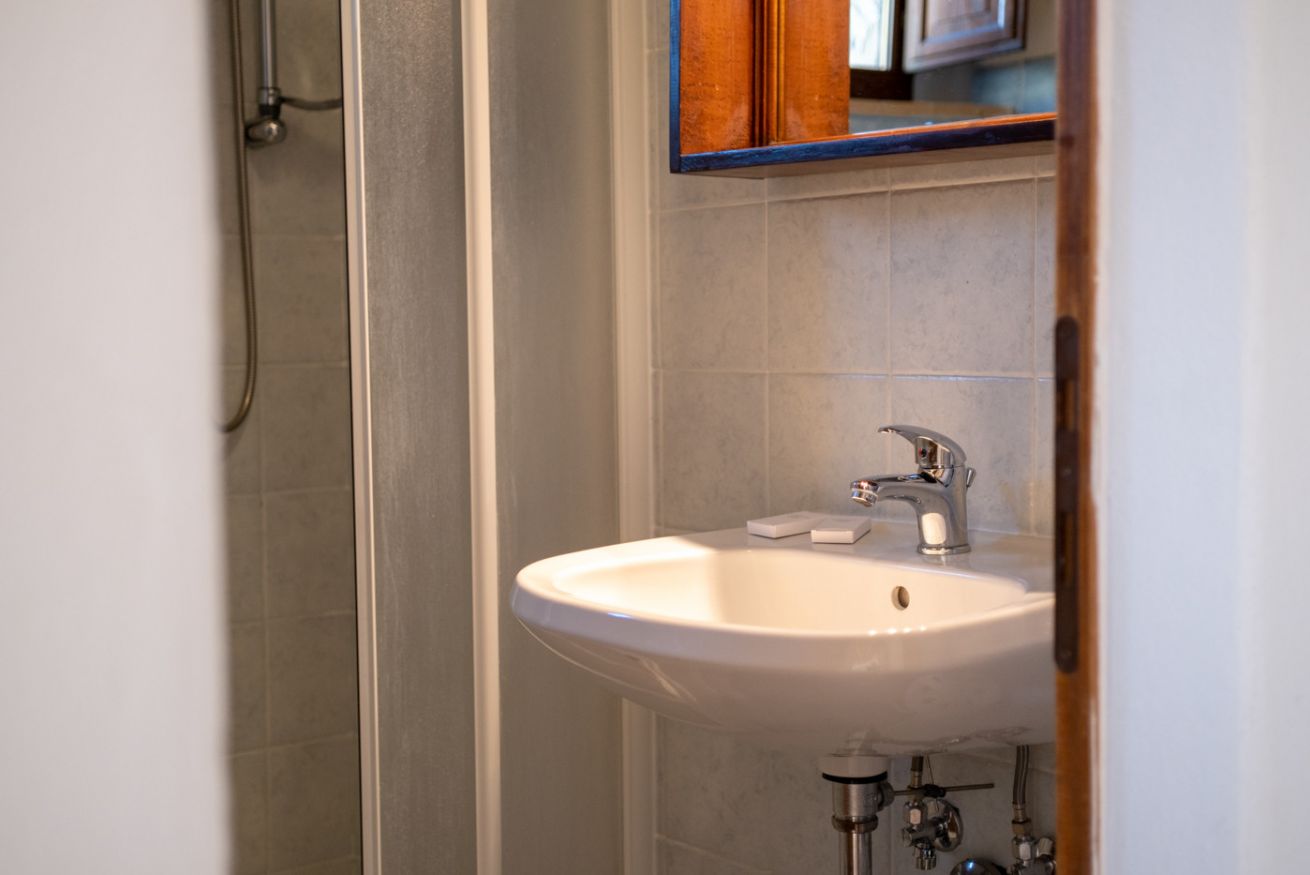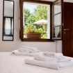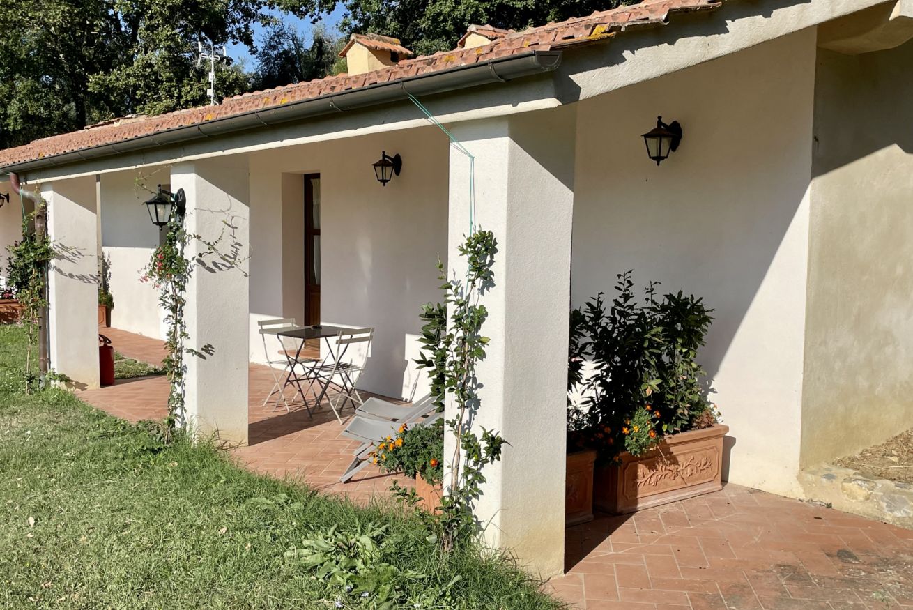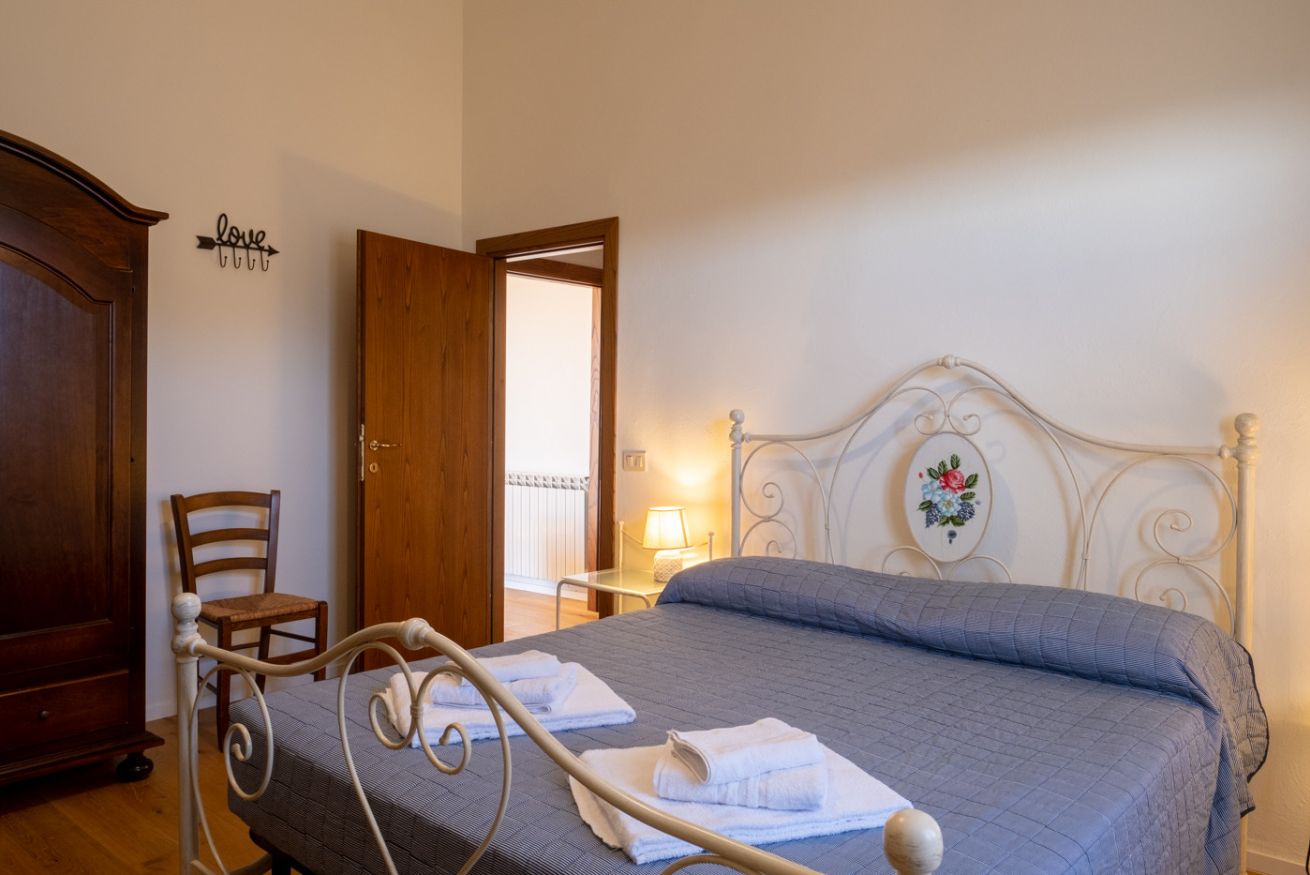 Double room located on the ground floor of the farmhouse “Scuderia" at Il Borgo, in a dwelling with only two units, equipped with a private bathroom. On request it can be combined with a living area with TV and double sofa bed, or second bedroom with two single beds (or double bed). Air Condition. Large outdoor area with private garden and panoramic view. Access to swimming pool.