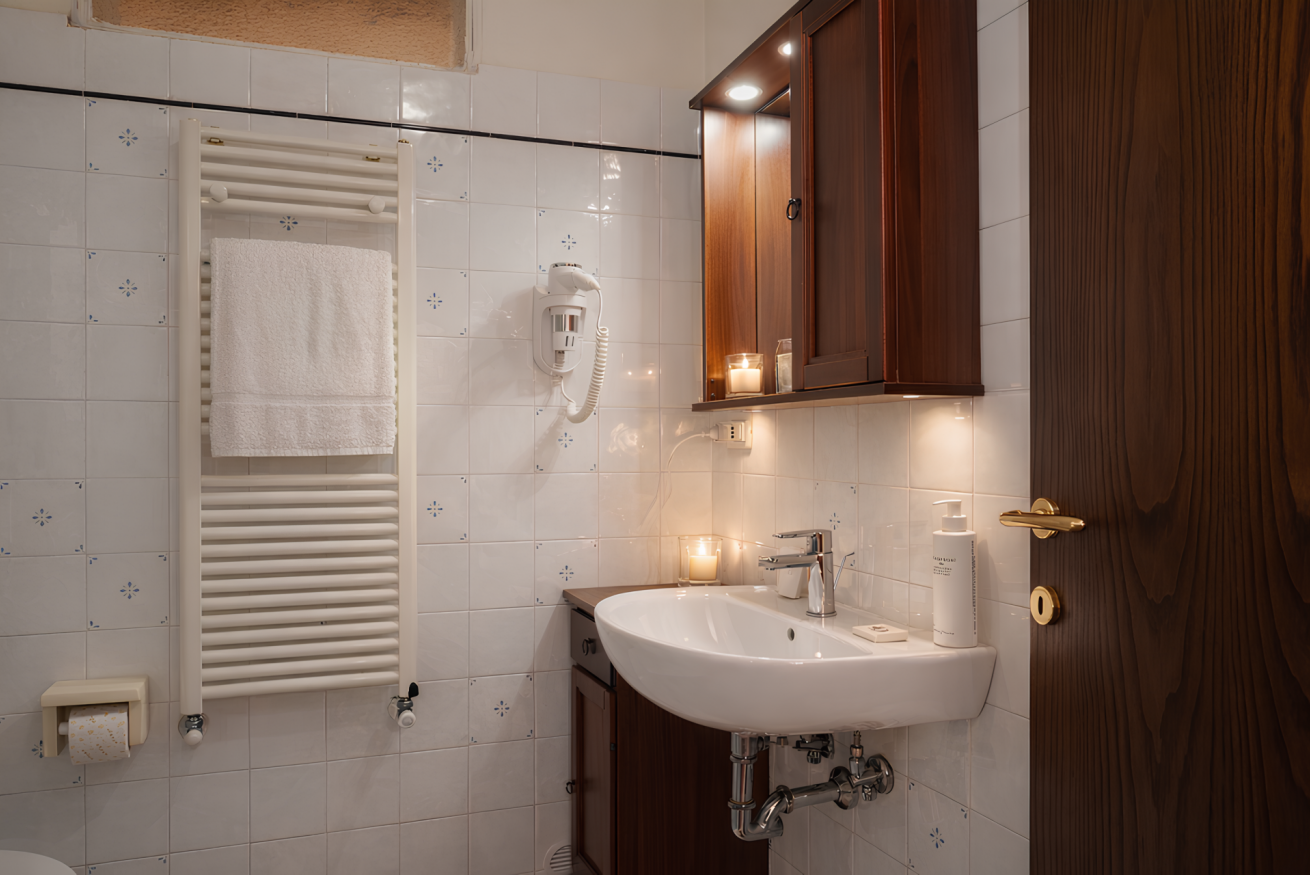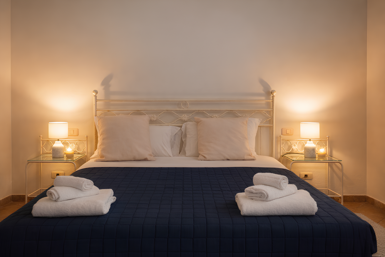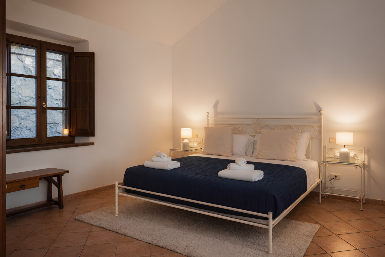 Double room located on the first floor of the “Cacciatore” farmhouse at Il Borgo. It features a private bathroom, TV and a comfortable sofa, ensuring a pleasant and relaxing stay. Air conditioning is included. Outside, a furnished panoramic terrace offers open views, ideal for enjoying the surrounding landscape and moments of quiet.